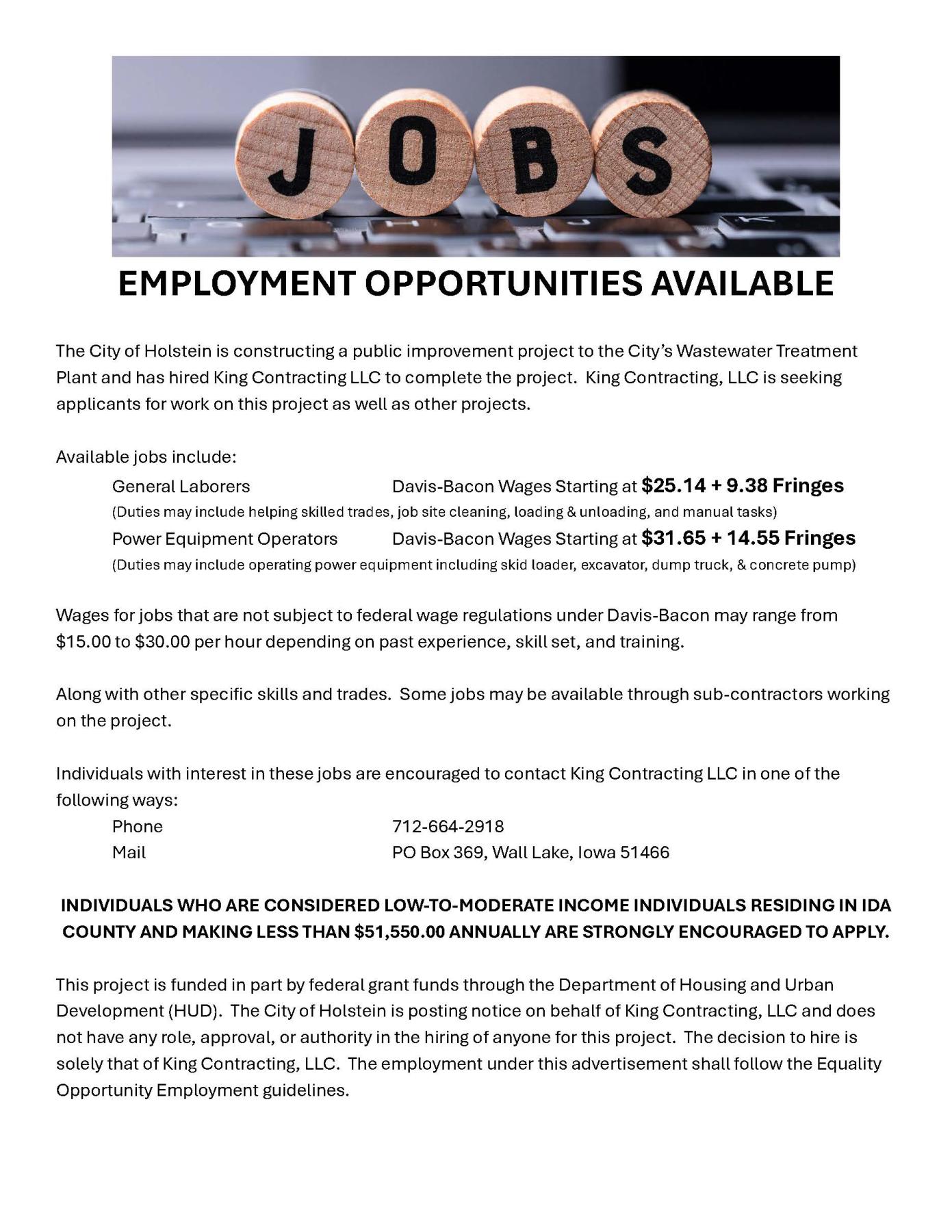 Employment ApplicationCurrent Job Openings — City of HolsteinThe City of Holstein is currently not hiring.Check back here for future opportunities.Last updated: August 28, 2025.